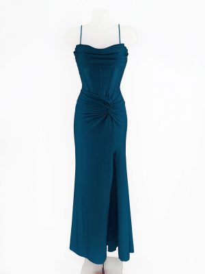 Vestido de fiesta largo con tejido de elastham y brillo.