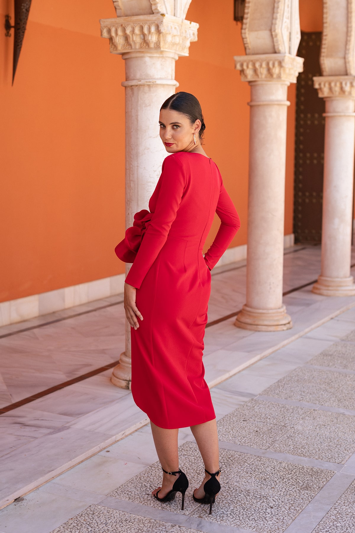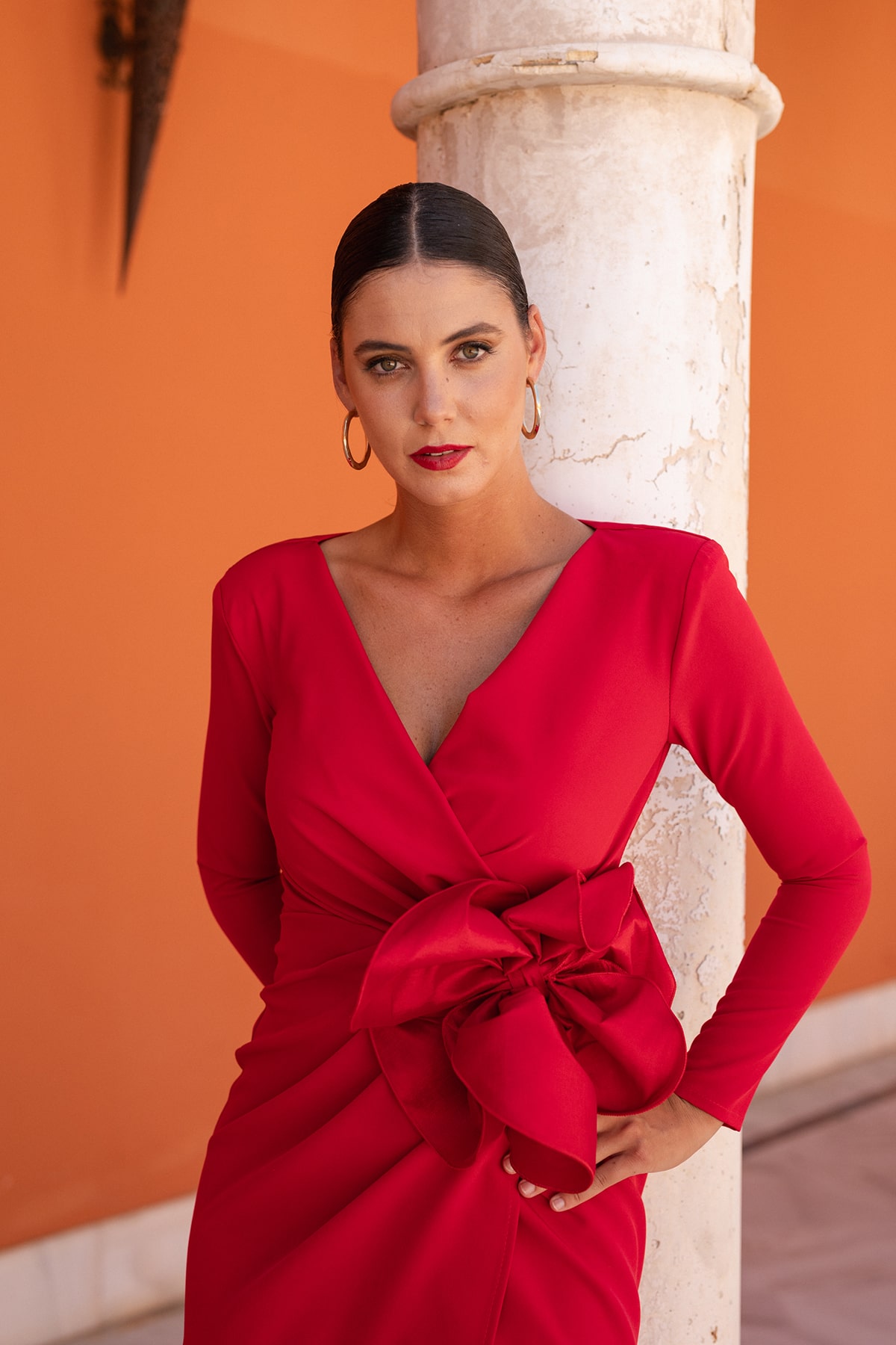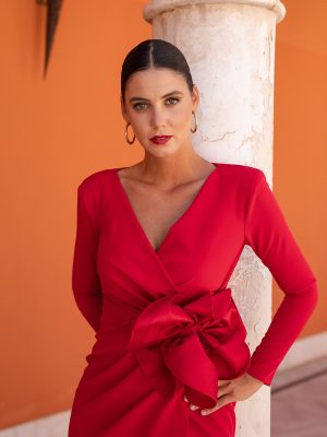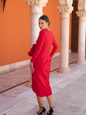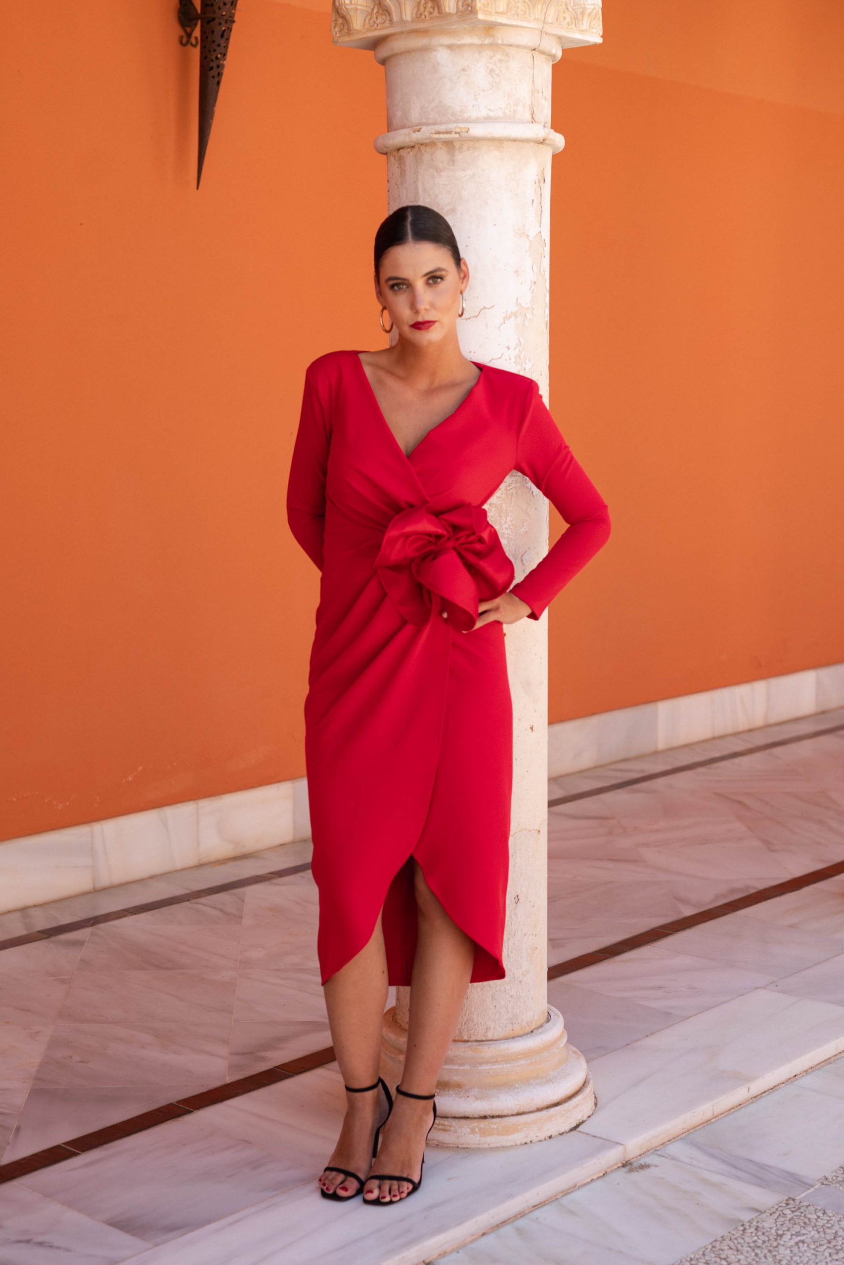 MIDI CON MANGAS CRUZADO FLOR TAFETAN EN CINTURA