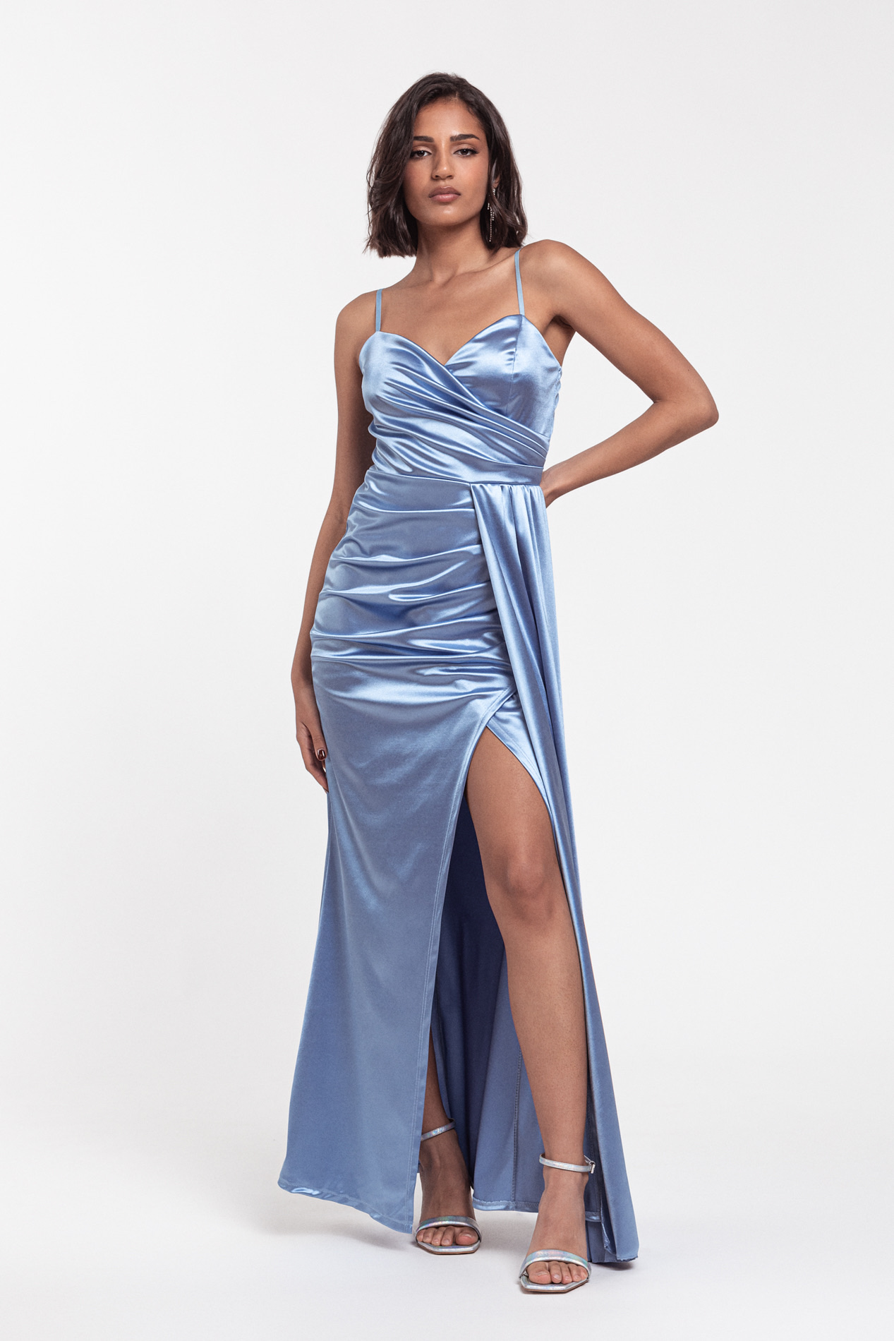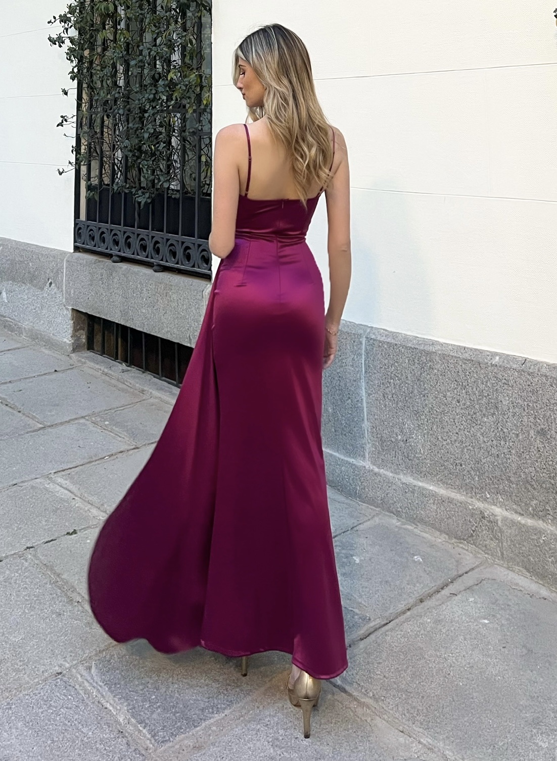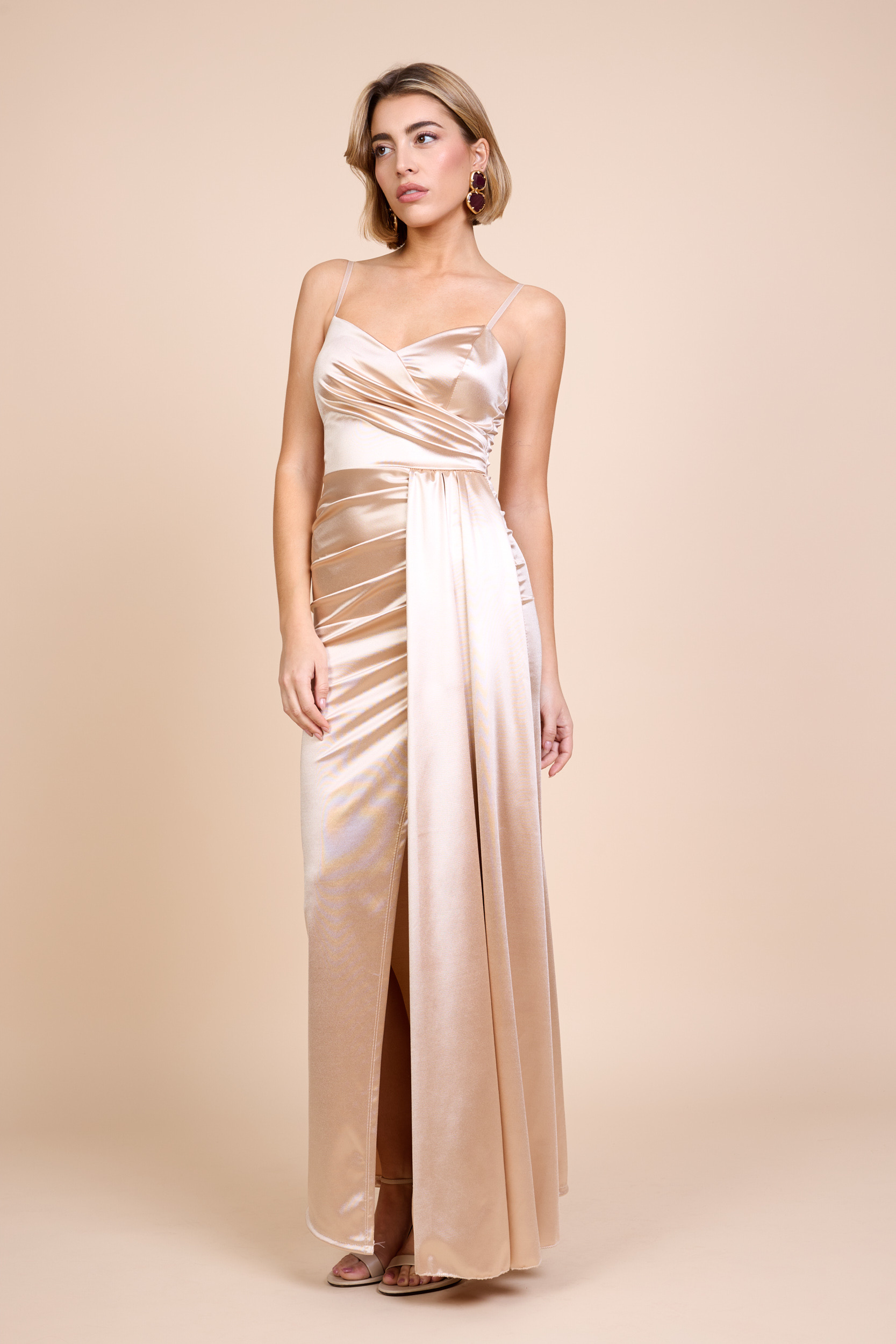 Vestido largo en tela efecto satén..