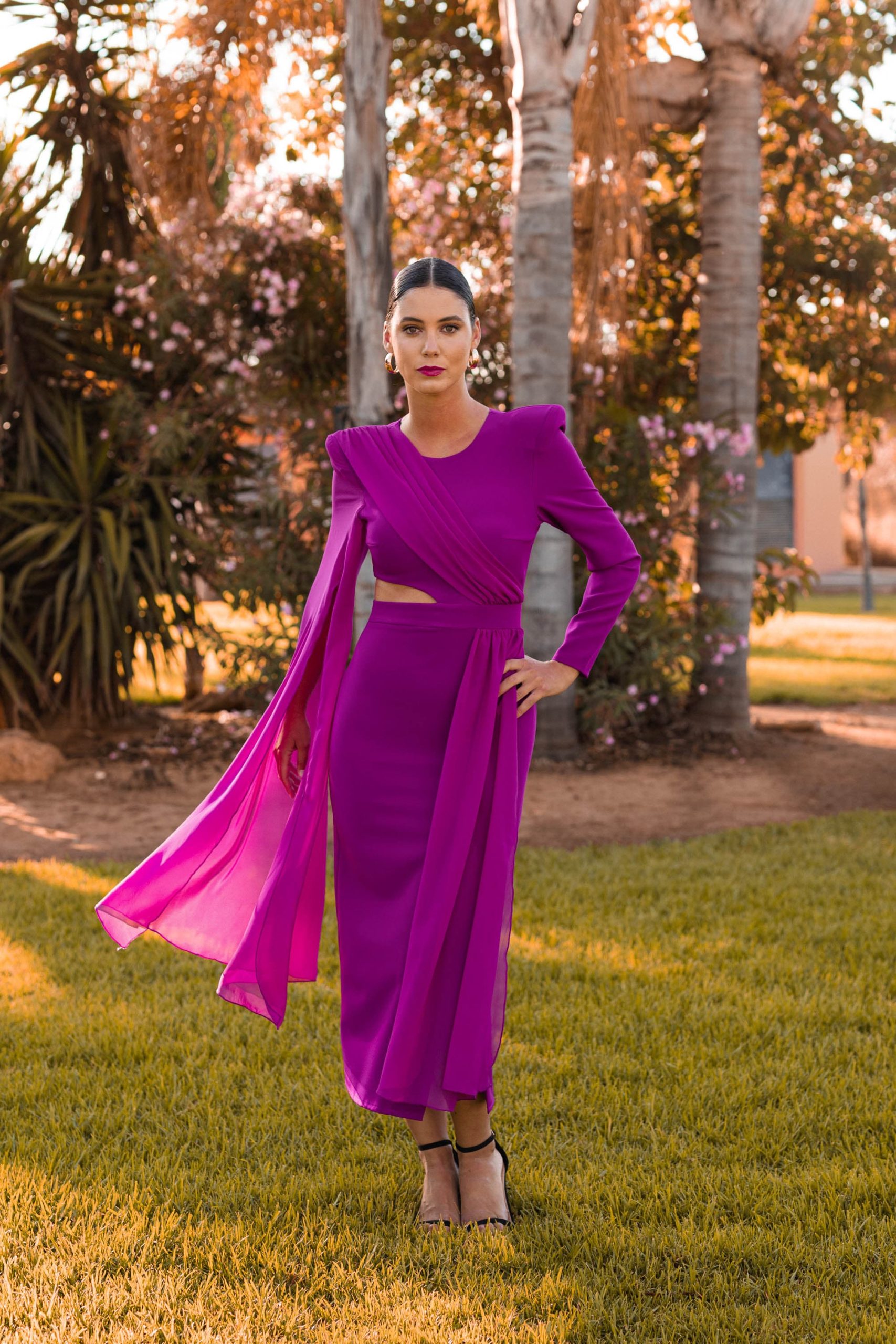 LARGO CON MANGA GASA Y CUT OUT EN CINTURRA